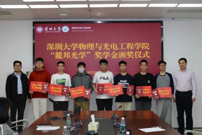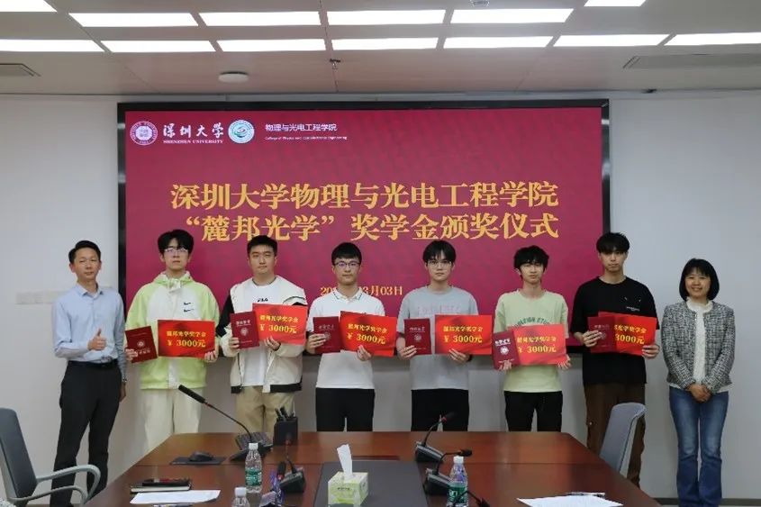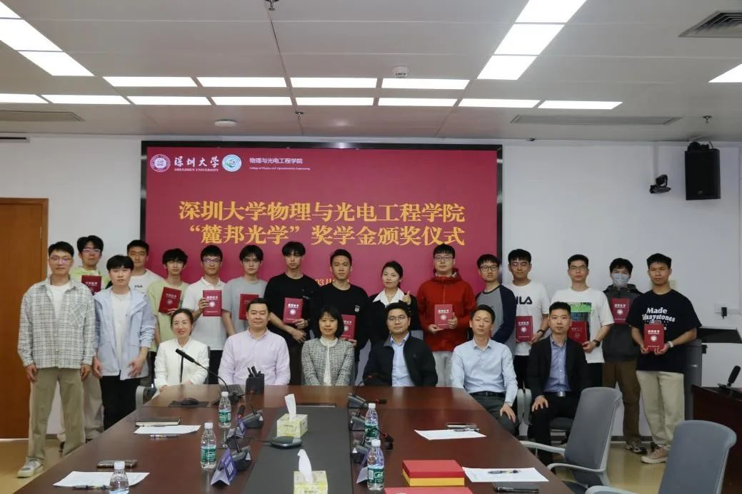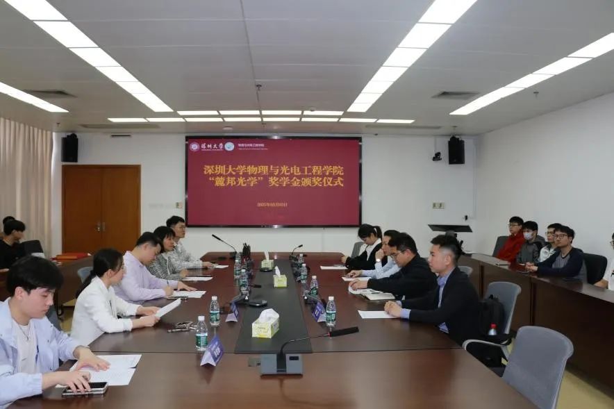 On March 3rd, the “Lubang Optics” Scholarship Award Ceremony of the College of Physics and Optoelectronic Engineering, Shenzhen University was held in Conference Room 1421 of Zhiyuan Building. Attendees included Fan Yingchao, General Manager of Changsha Lubang Optoelectronic Technology Co., Ltd., Sales Director Mo Zhong, Sales Supervisor Chen Cheng, Zhang Haifei (scientific research sales) from Shenzhen Lubang Technology Co., Ltd. (hereinafter referred to as “Lubang Company”), Wang Zeng, Director of the Alumni Liaison Office of Shenzhen University, Liu Liwei, Executive Dean of the College of Physics and Optoelectronic Engineering, Dragon Xiaoli, Deputy Secretary of the Party Committee, Xie Haowei, Graduate Counselor, Li Kaixin, Undergraduate Counselor, and 14 award-winning students.